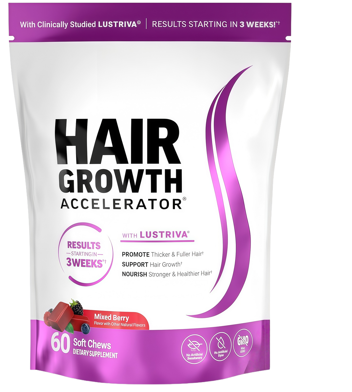 It's powered by Lustriva, a patented and scientifically superior form of biotin and silicon that's 40X more soluble than regular biotin, and clinically studied to increase hair thickness startingin 3 weeks.Delivered in delicious and convenient soft chews,elevating the way you look and feel has never been easier.
